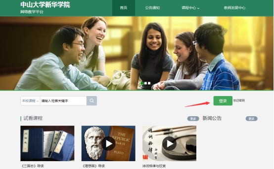 1.登录中山大学新华学院泛雅平台
