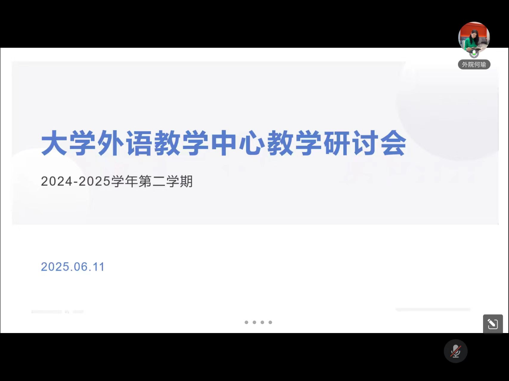 2025年6月11日下午,大学外语教学中心召开本学期期末工作线上会议。122cc太阳集成游戏党总支书记、副院长何瑜,大学外语教学中心副主任赖宁艺,及大学外语教学中心全体教师参加了本次会议。会议由赖宁艺主任主持,围绕期末命题总结、期末工作相关规范、合格教学评估等内容展开。