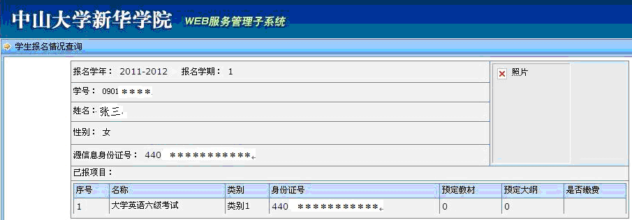 点击照片下方的“查看报名情况”(见图4),核对本人的“学号、姓名、性别、身份证号、已报项目信息”。
