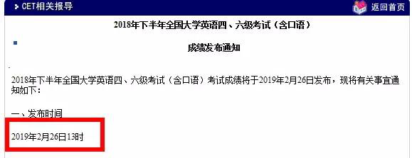 2018 年下半年四六级成绩查询时间为