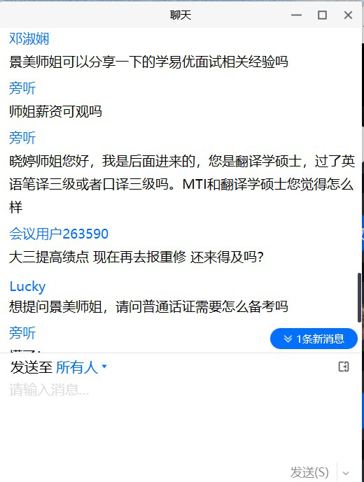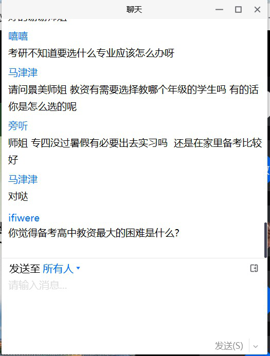 最后是提问环节,同学们从备考专四和专八、考证、实习等方面向师姐们积极请教,两位师姐根据自己的学习和备考经验做出了详细的解答。