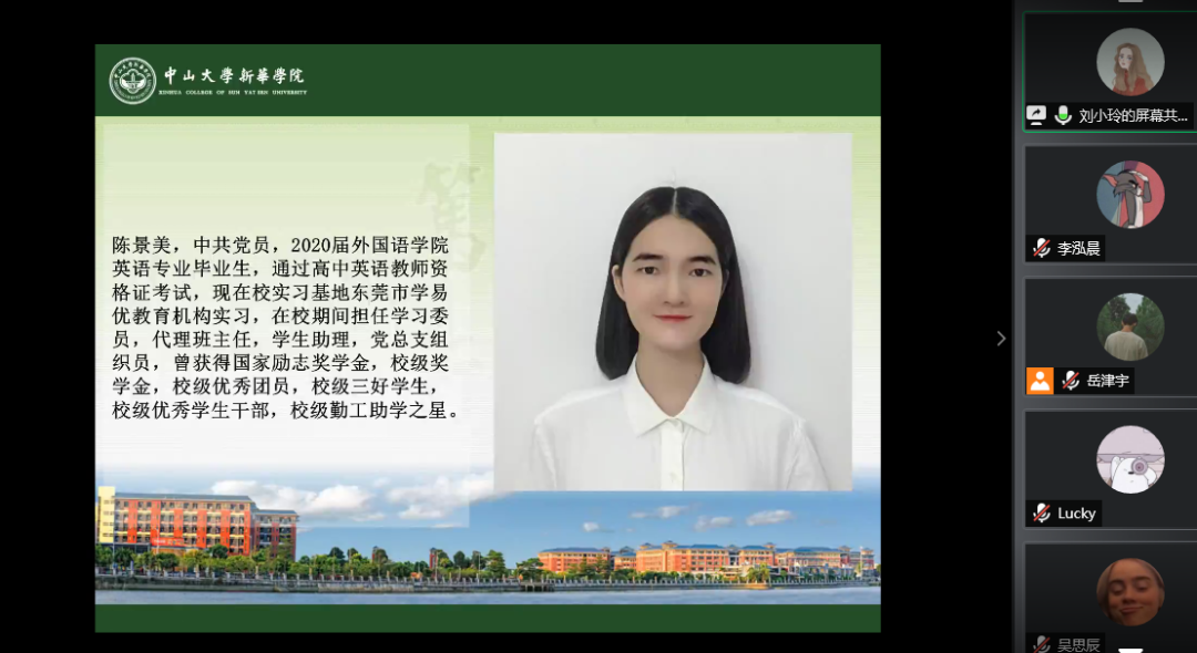 2020年6月15日晚,由中山大学新华学院122cc太阳集成游戏举办的学子讲坛于线上顺利举行。122cc太阳集成游戏党总支副书记欧衍伽老师、团委副书记李水清老师等与会。