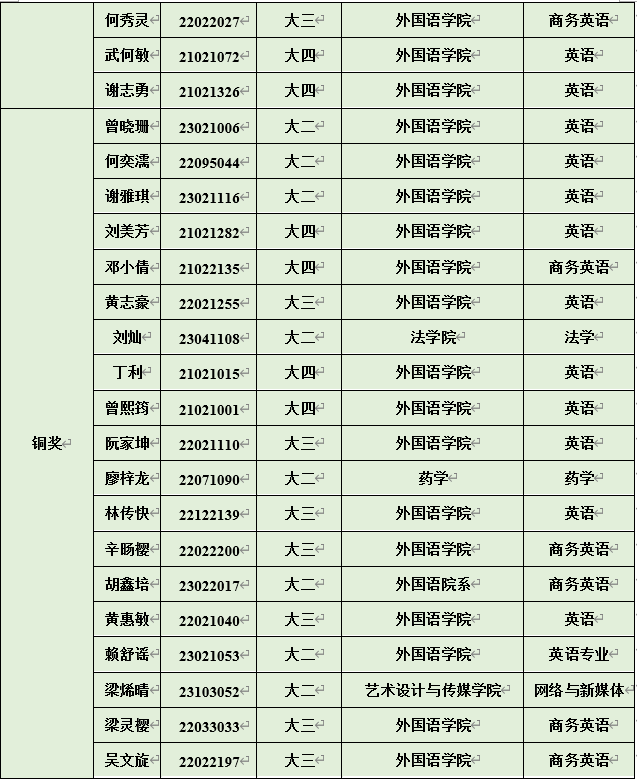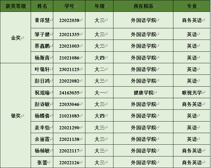 通过本次比赛,莘莘学子赛出了我校的风采,激发了潜能,提升了英语读写译综合实战能力。经过本次大赛组委会系统统一评分,本次校内初赛获奖名单也出炉啦!