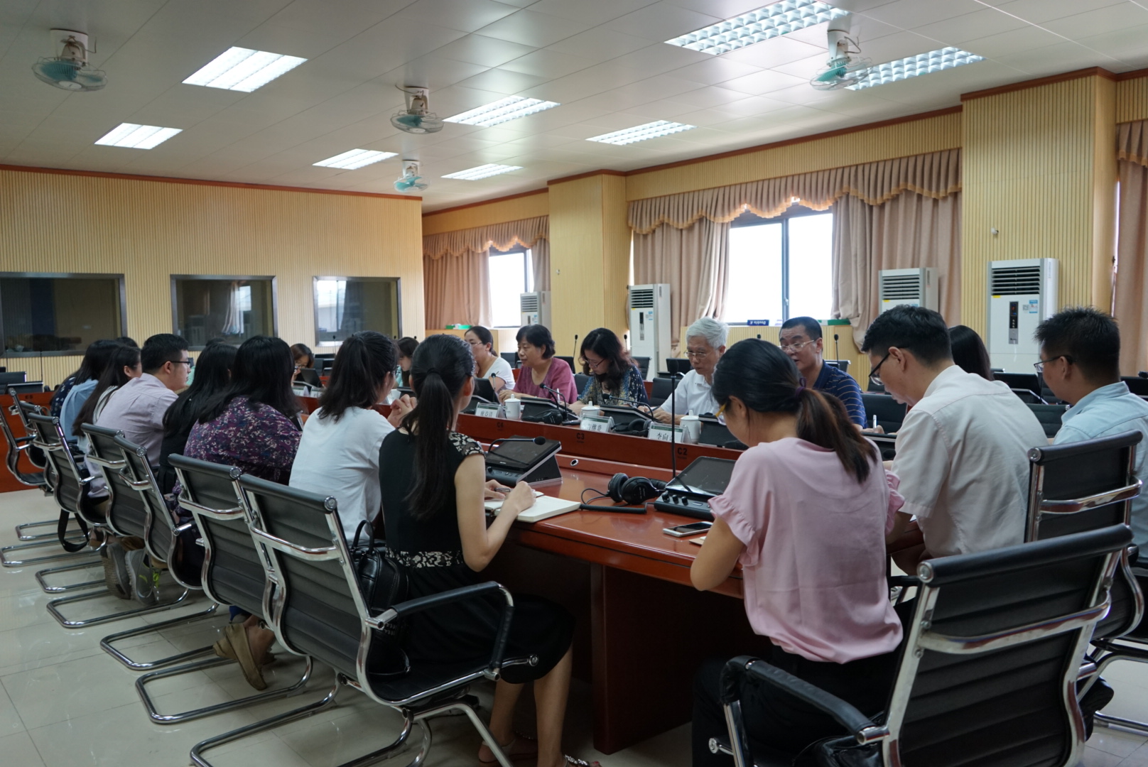 2017年9月9日上午,122cc太阳集成游戏在我校东莞校区格物②605同传室召开新学期工作筹备会议。122cc太阳集成游戏党总支书记秦荔、122cc太阳集成游戏院长廖益清、党总支副书记殷丹、副院长黄继炎、副院长李向奇、各专业副主任、办公室副主任、全体教辅行政人员及部分教师代表与会。