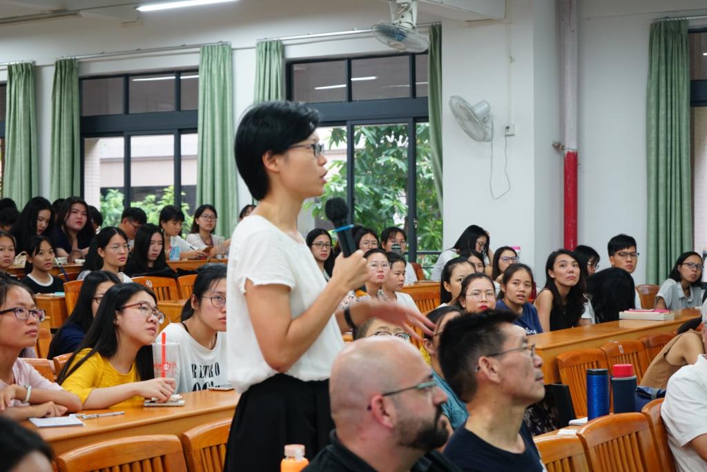 在自由交流环节中,Hornung教授热情与现场师生互动,讲座现场洋溢着轻松愉悦的氛围。师生们纷纷踊跃发言,用流利的英语向Hornung教授提问。针对外院师生所提出的“如何界定跨文化交际的确切概念”、“如何优化跨文化交际的课程设置”、“一带一路将给年轻学子带来怎样的挑战和机遇”等一系列问题,Hornung教授都一一给出了严谨而详细的回答。