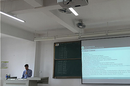 本次答辩分为两个环节。第一环节为6分钟的PPT展示,展示内容需包含学生论文研究的主要内容介绍、论文研究的实践意义以及文研究所存在的问题。第二部分为答辩小组评委老师提问及学生回答环节。答辩当天,同学们结合精心准备的PPT内容,流利自然地介绍了论文研究的基本情况。在答辩委员提问环节中,大多数同学能够用精炼的语言,准确地表述出自己的观点,得到了评委老师们的肯定。而在答辩过程中,评委老师们亦针对论文中论述不清楚、不详细、不确切、不周全之处以及自相矛盾和有值得探讨之处提出了相应的问题与建议。同时评委老师们指出,同学们应该要更加注意论文格式、注明参考文献、切忌论文选题过宽过泛等问题。这不仅使得在场答辩选手们知晓自身在本次答辩中有哪些不足,亦给了准备参加第二场毕业论文答辩的同学们更多建议,着实受益匪浅。