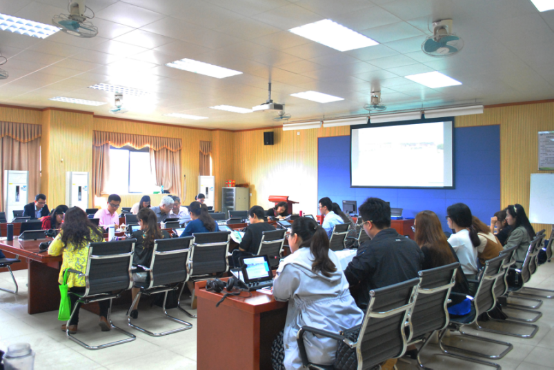 2017年4月26日下午,2017年122cc太阳集成游戏英语(翻译)专业教师座谈会在我校东莞校区格物楼②B605召开。王庭槐校长、黄继炎副院长出席会议。英语(翻译)专业副主任李贻担任会议主持,英语(翻译)(以下简称“英语专业”)专业全体专任教师与会。