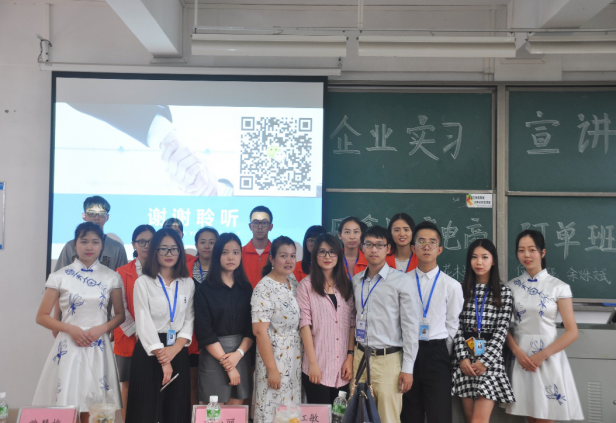 曾在彤鑫公司实习的13级毕业生余烁斌师兄、曾慧梅师姐和杨小丽师姐为即将实习的同学们分享他们的实习经验。三位师兄师姐们表示,他们都是从小职员开始,一步一个脚印地不断拼搏。同时以自身经历告诉大家,实习过程有苦也有甜,但师兄师姐们都指出了心态的重要性并希望即将实习的同学们能够抓住机遇,在能吃苦的时间里多吃苦,在能学习的时间里多学习。