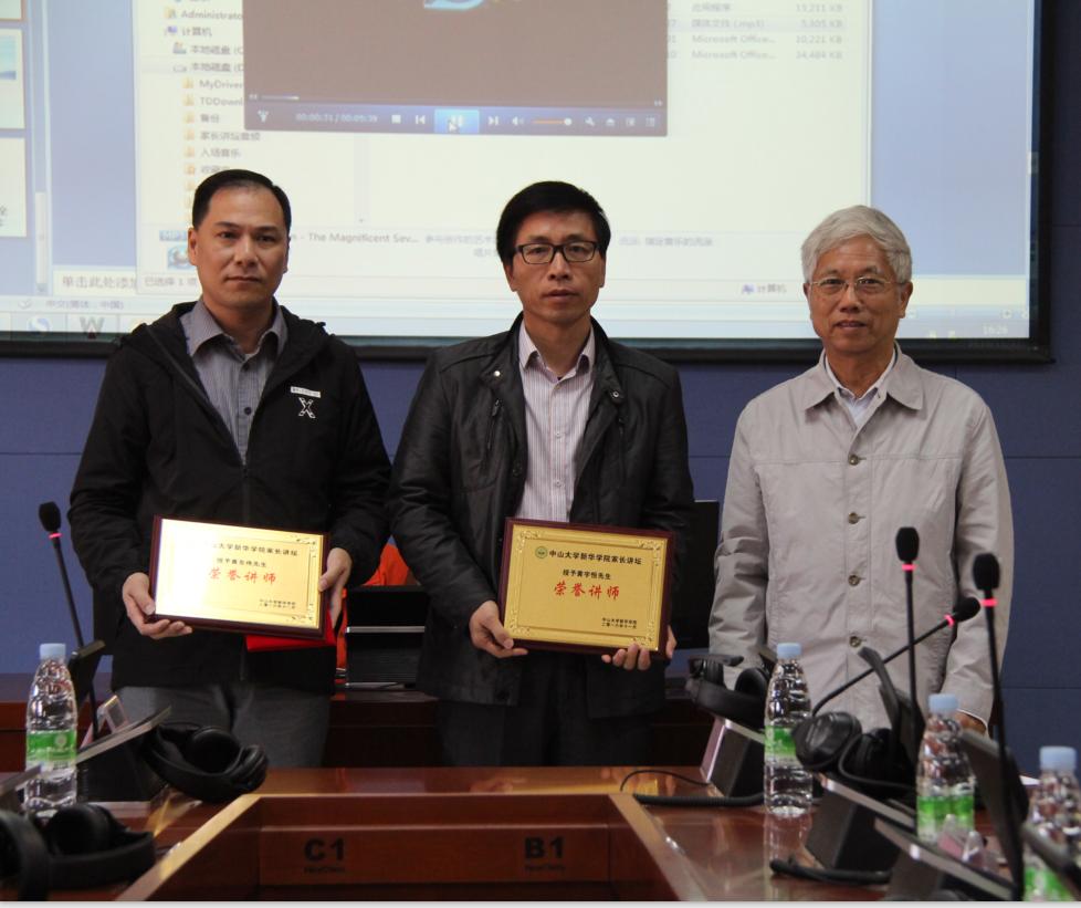 图七:外语系副主任黄继炎教授为此次讲坛的两位家长代表颁发证书
