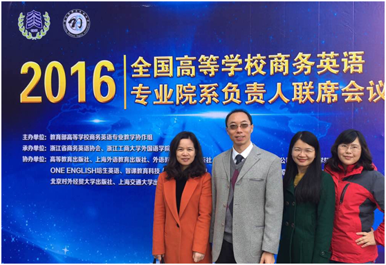 2016年12月17至18日,中大新华122cc太阳集成游戏院长廖益清教授与商务英语专业副主任何瑜赴浙江工商大学,参加2016年全国高等学校商务英语专业院系负责人联席会议。