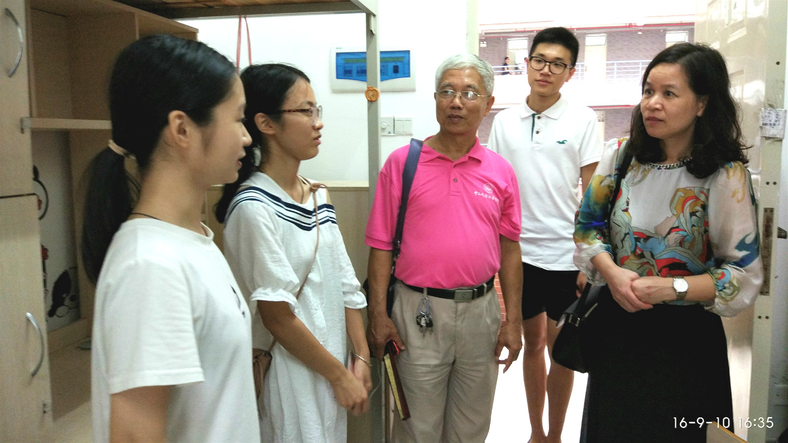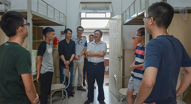 在新生宿舍,廖益清主任、黄继炎副主任带领系辅导员仔细地检查了宿舍整体环境卫生以及相关设施,深入新生了解新生遇到的困难和问题。此外,主任们还耐心询问新生的学习、生活等各方面的情况,并再三嘱咐新生们注意在校期间的人身安全、用电安全、财产安全等问题,以良好的精神面貌迎接充满挑战和机遇的大学生活。