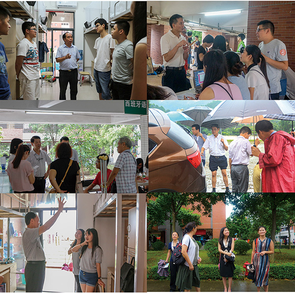 两天的时间里,学院王庭槐院长、党委周云书记、蓝永金副院长副书记、杨卫华副院长、李中生副院长、廖振亮副院长、许淑锐副院长、刘婉莉院长助理等领导携各系部负责人冒雨前往穗莞两校区,视察迎新工作,走访宿舍看望新生,让新生感觉到来自学院的关怀与温暖。