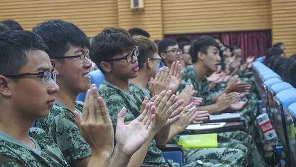 王院长演讲结束之际勉励同学:有为这个国家、民族、家人、自己奋斗的志气、目标,然后志存高远,脚踏实地,锲而不舍的你,就能成就伟大而美好的梦想!现场响起热烈的掌声。刘英摄