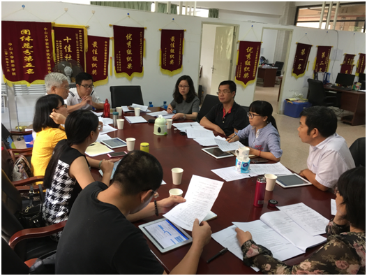 2016年10月27日中午, 外国语言文学系2013级毕业论文(设计)指导小组第一次会议在我院东莞校区格物楼②B104顺利召开。参加此次毕业论文指导小组会议的有:外语系主任廖益清,副主任黄继炎,副主任李向奇,英语专业副主任李贻、商务英语专业副主任何瑜、办公室副主任欧衍伽、邱易安教授、杨振同副教授、李灿副教授、李国玉老师、教务秘书何燕老师及曹朝芳老师。