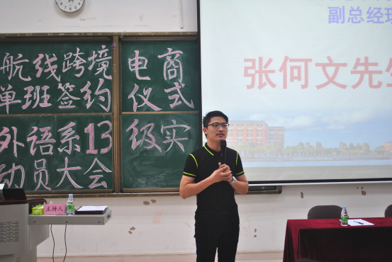 商务英语专业副主任何瑜老师对新航线提供的实习项目作进一步说明及解读,并寄语同学们能认真对待每一次实习机会,踏踏实实工作,提升自己的业务水平。