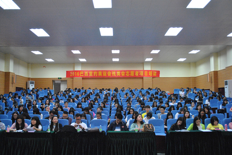 2016年4月20日,外语系于我院东莞校区召开2016年巴西里约奥运会、残奥会(以下简称:里约奥运)志愿者培训会议。华人会互联网有限公司中国区项目监事林刚,华人会中国区I T项目负责人黄振华,华人会项目经理皮白羽,外语系老师李文蓓与会,约三百余名外语系学子参与了此次培训。