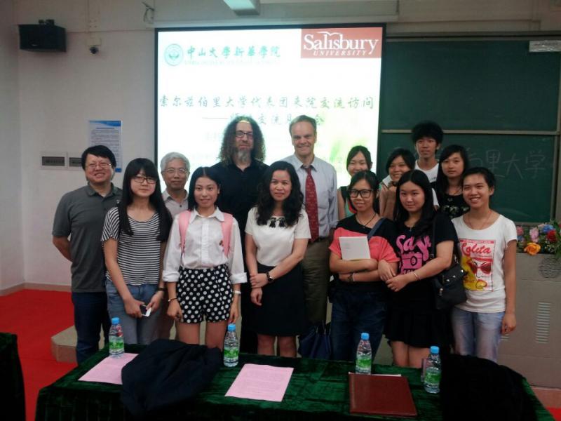 2014年5月27日,索尔兹伯里大学代表团来我院交流访问,期间,语言学院院长宋红专博士、文学院院长Maarten Pereboom博士以及研究生招生办负责人Christopher Vilmar博士与英语专业学生在东莞校区教②A201进行师生交流。交流会由学科建设与合作交流部主办,行政人事部、外国语言文学系承办,百思英语协会协会。外语系廖益清主任、黄继炎副主任、学科建设与合作交流部李小梅副部长等领导,与外语系师生共同出席了本次交流会,交流会由教学科研部尹小川副部长主持。