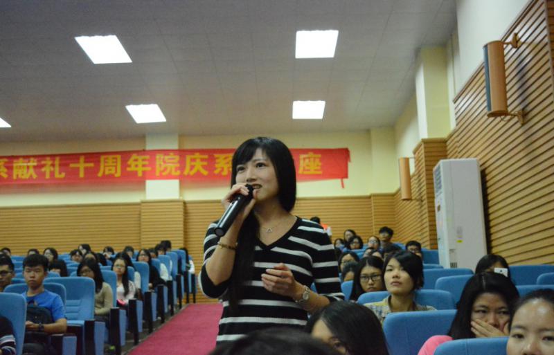 随后进行了现场提问互动环节,师生们都十分积极地提问,与杨先生热切交流,杨先生对此一一耐心解答。同学们幽默的问题也是给现场带来了不少欢乐,将现场气氛推向高潮。