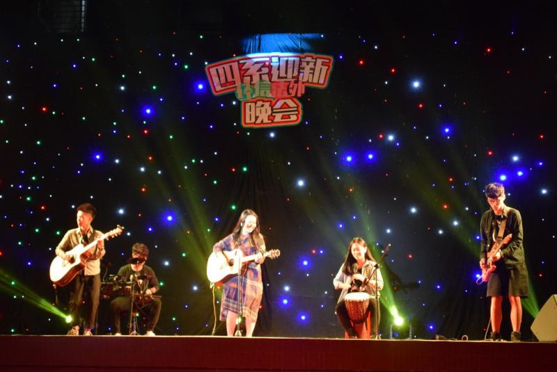 2015年10月10日晚7点,由外语系学生会,法律学系学生会,信科系学生会,经贸系学生会首次联合举办的四系迎新之草地派对在足球场舞台上举行。足球场舞台上,那片璀璨星空,映照在每个人的笑脸上。映射出耀眼的熠熠光辉是汗水的炫光,更是欢声笑语的衍生物。