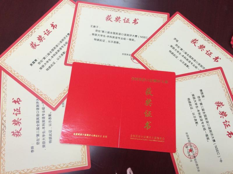 所有参赛学生通过组委会提供的考试终端参加历时将近30分钟的计算机口语测试(分为篇章朗读和话题阐述两个部分)。测评过程全部传输至美国语言测评中心进行测评处理并生成评报告,从准确度、流利度、完整度、韵律度、可被理解度、近母语值等方面对参赛选手的英语口语表达能力进行评估。口语测评报告详细地指出了学生的哪个单词、哪个音节发音错误,十分有助于学生自己改正提高发音质量。依据测评报告,每位参赛选手都获得一份由美国SRI口语测评系统判定的口语等级认定证书。目前,获奖证书、口语等级证书和口语测评报告都已经寄到了外国语言文学系。
