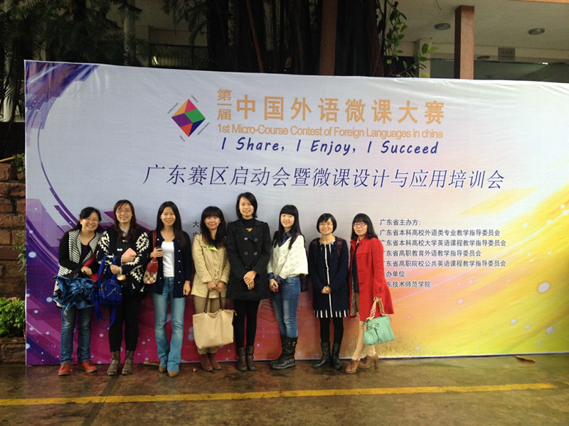 11月8日,第一届中国外语微课大赛广东赛区启动会暨微课设计与应用培训会于广东技术师范学院第二教学楼召开,来自广东省内的数十所本科、专科院校的几百名代表参加了培训会。此次会议主要围绕微课理念、微课设计与制作、微课程在外语教学中的应用以及微课大赛赛程情况展开。中山大学新华学院外语系青年教师赵琳、陈绮雯、黄珍等十余人参加了会议。