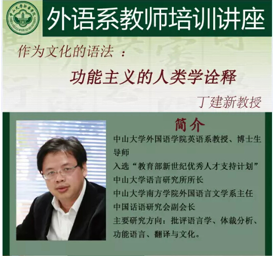 主讲人: 中山大学122cc太阳集成游戏英语系教授、博士生导师 丁建新