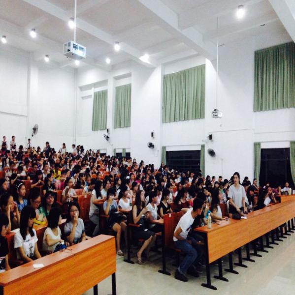 酷热炎暑,今年我们外国语言文学系迎来455名新生。为了让新生进一步了解学院建设及社团组织的情况,方便同学们尽快熟悉大学生活,我系团总支、系学生会及百思英语协会共同举办的新生交流会于9月2日晚上7点在教1F203正式拉开帷幕。本次活动邀请到了外国语言文学系2014级辅导员林少淇老师,系团总支副书记陈嘉敏,系学生会主席邓逸豪、副主席黄祥健以及百思英语协会会长陈蓉。