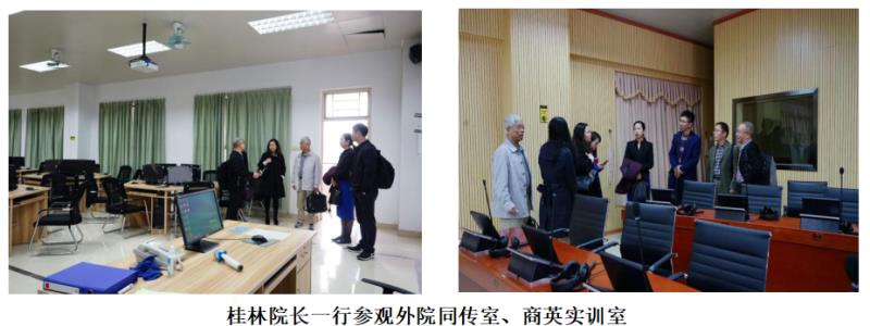 为使代表团对我院的教学模式有更加深入的了解,交流会结束后,桂林院长一行在我院领导及教师代表陪同下参观了外院同声传译实验室及商务英语实训室。桂林院长盛赞我院学术氛围浓厚,教学理念先进,希望在今后的学习交流中,能够不断增进彼此友谊,实现双方共赢。
