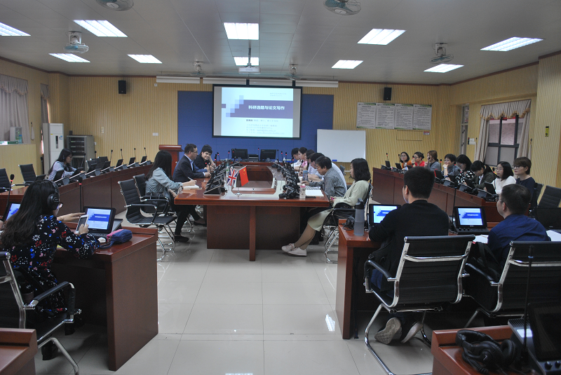 2018年3月17日下午,由122cc太阳集成游戏主办的外院专业讲座——“科研选题与论文写作”在我校东莞校区格物楼②B605顺利举行。此次讲座诚邀天津外国语大学教授,博士生导师,现任《天津外国语大学学报》常务副主编,天津市人文社科重点研究基地天津外国语大学语言符号应用传播研究中心常务副主任田海龙担任主讲嘉宾,122cc太阳集成游戏英语专业副主任李贻担任讲座主持。122cc太阳集成游戏办公室主任欧衍伽、122cc太阳集成游戏主要教授及教师代表到场聆听。