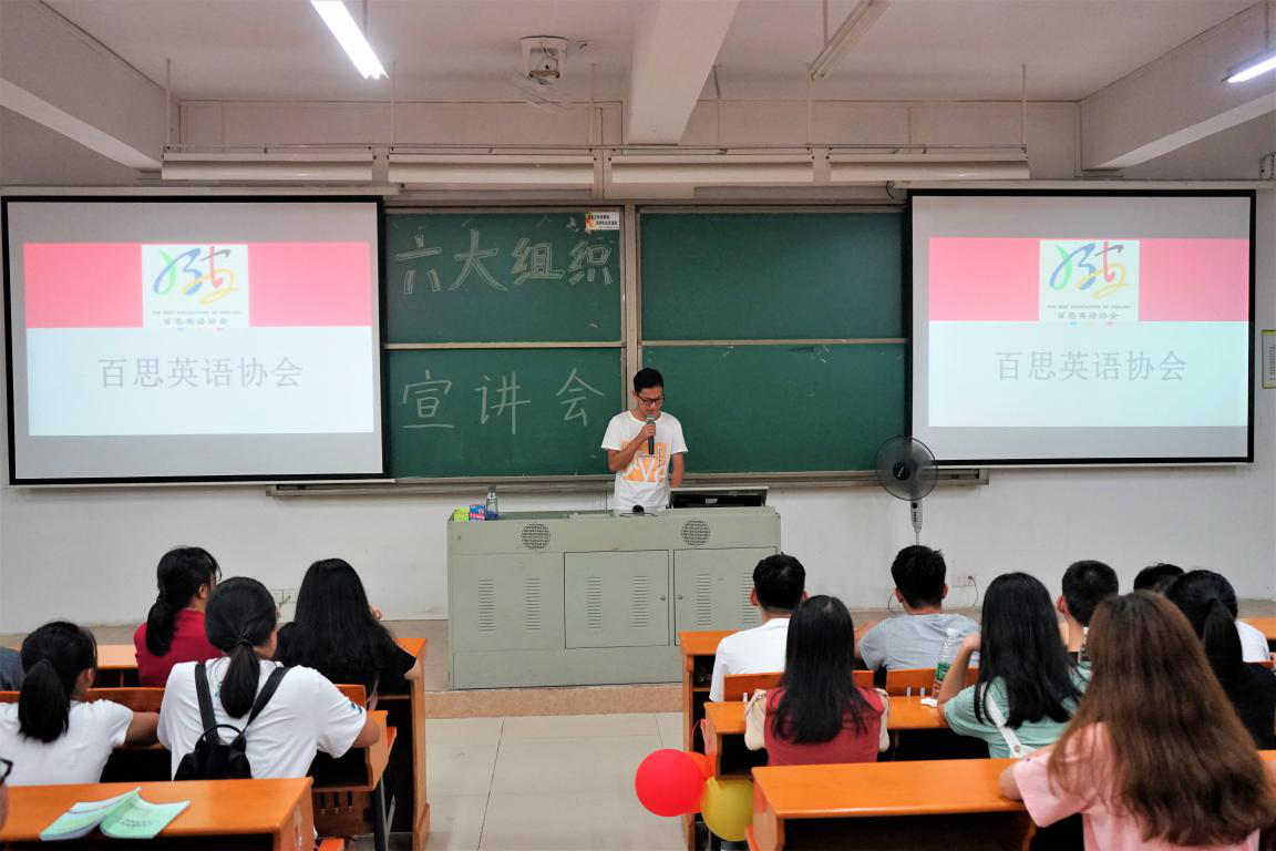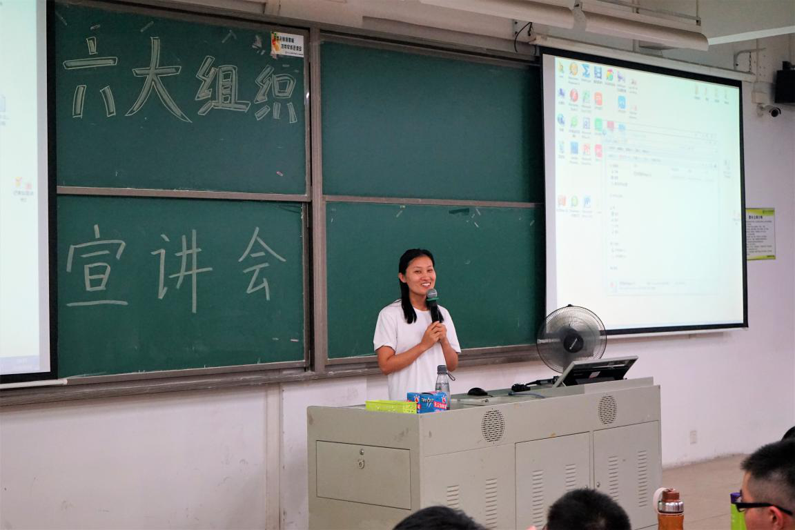 紧接着,外院团委、学生会、向日葵志愿队、记者站、百思英语协会及现代视觉研究社的负责人分别向新生们详细介绍其组织内部架构、各部门职能,展示以往的活动成果并分享了自己在组织工作中的收获。