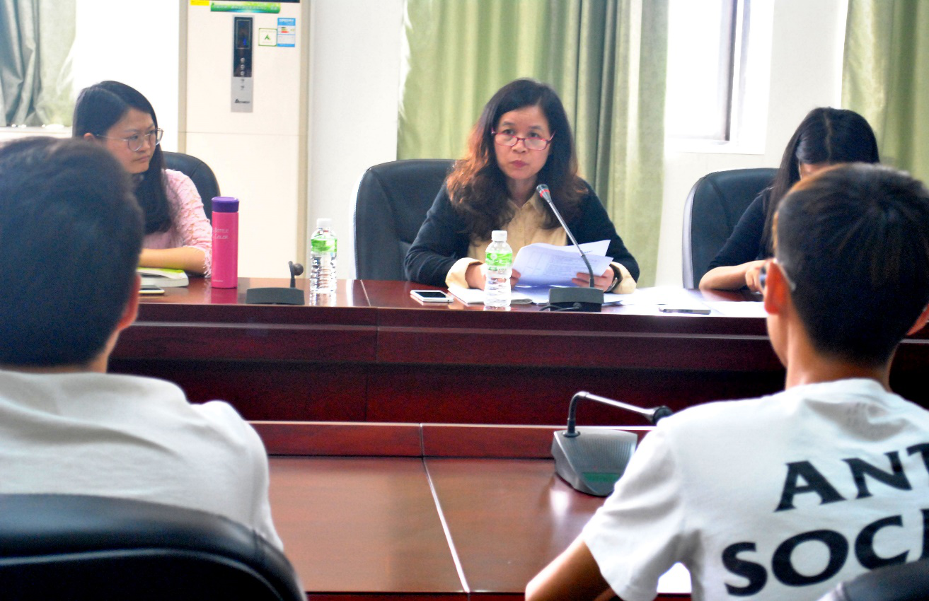 紧接着,各学生代表相继提出学习中存在的问题及对相应老师的建议。15商务英语专业学生代表率先发言,她希望统计学与数据分析课的老师在课堂上可以进行全英教学。对此,廖院长认为,对于理论性及知识性较强的课程,教师们结合中英文授课能让学生更好地理解吸收知识,而且国内也很少学校能对此类课程进行全英教学。廖院长还说道,三年级的学生学习的关注点已不仅仅是语言技能,更多的是需要进行知识面的拓展,尤其是商务英语专业的学生,需要摄入更多的商务知识,而商务知识覆盖面大,有些知识中文教学都难以理解,所以很难在课堂上进行全英教学。