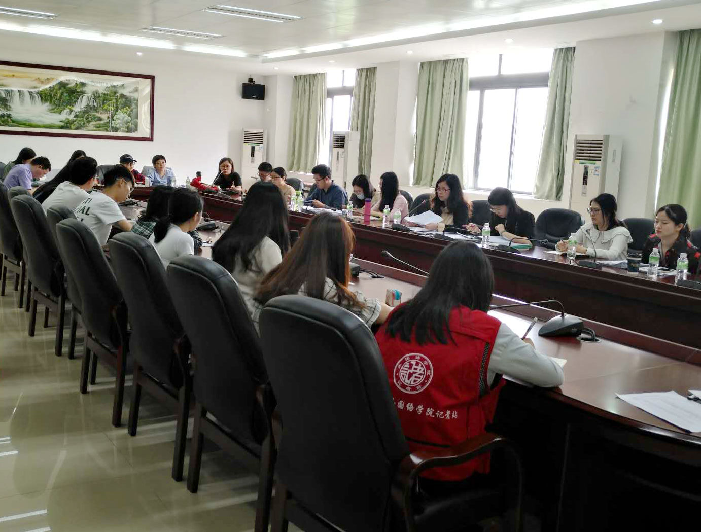 会议最后,廖院长强调,大学主要在于自我学习,同学们不能完全依赖老师,老师更多的是在课上引导、检查、督促学生的学习情况,解决学生自主学习难以解决的问题。同学们在课后要勤加学习。此外,老师们也要收集学生的问题,在课堂上集中解决,事半功倍。廖院长和与会老师们深入浅出,循循善诱的讲解沟通引得同学们纷纷点头。整个会议期间同学们踊跃发言,廖院长和老师们积极解答,会场始终洋溢着轻松愉悦的氛围。