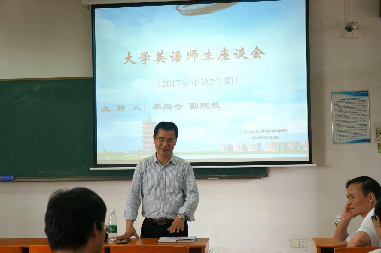 2018年04月11日下午,122cc太阳集成游戏大学英语教学部在我校东莞校区定静楼②A604召开大学英语师生座谈会。122cc太阳集成游戏副院长李向奇、大学英语教务秘书章烁老师,张漩老师、大学英语任课教师及16、17级学生代表参加了会议,李向奇副院长担任会议主持。