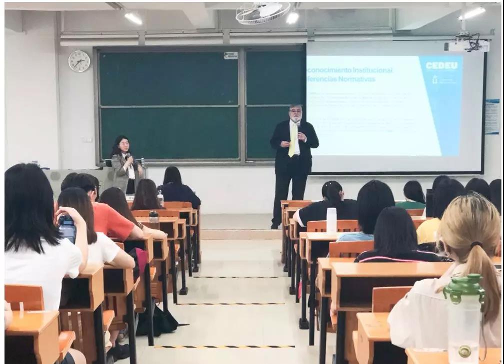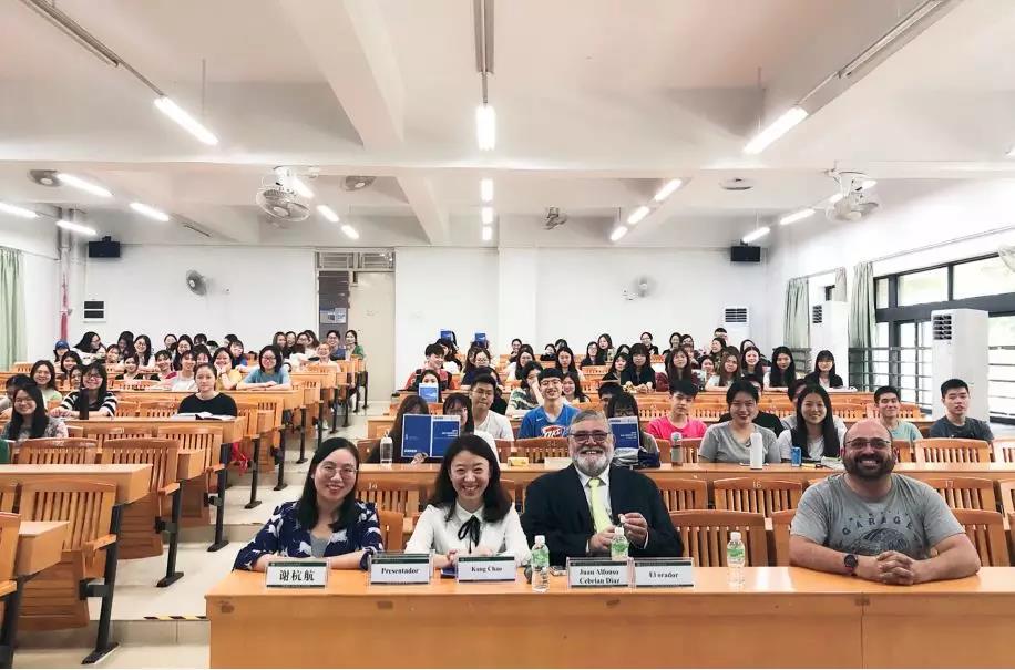 据悉,Alfonso Cebrián校长是巴塞罗那大学经济学博士,现任西班牙胡安卡洛斯国王大学CEDEU学院校长。他曾担任企业管理学校基金会、家族企业发展基金会负责人、研究开发和技术创新认证机构负责人及巴塞罗那旅游学校校长,精通西班牙语、加泰罗尼亚语、法语和英语。Alfonso Cebrián校长一直致力于学术的研究和推动校际间的合作与发展,多年的从业经验使他具备更加国际化、创新化的眼光,并对教育的多样化和国际化作出卓越的贡献。此次他受邀来开宣讲会,许多西语专业学生慕名而来。