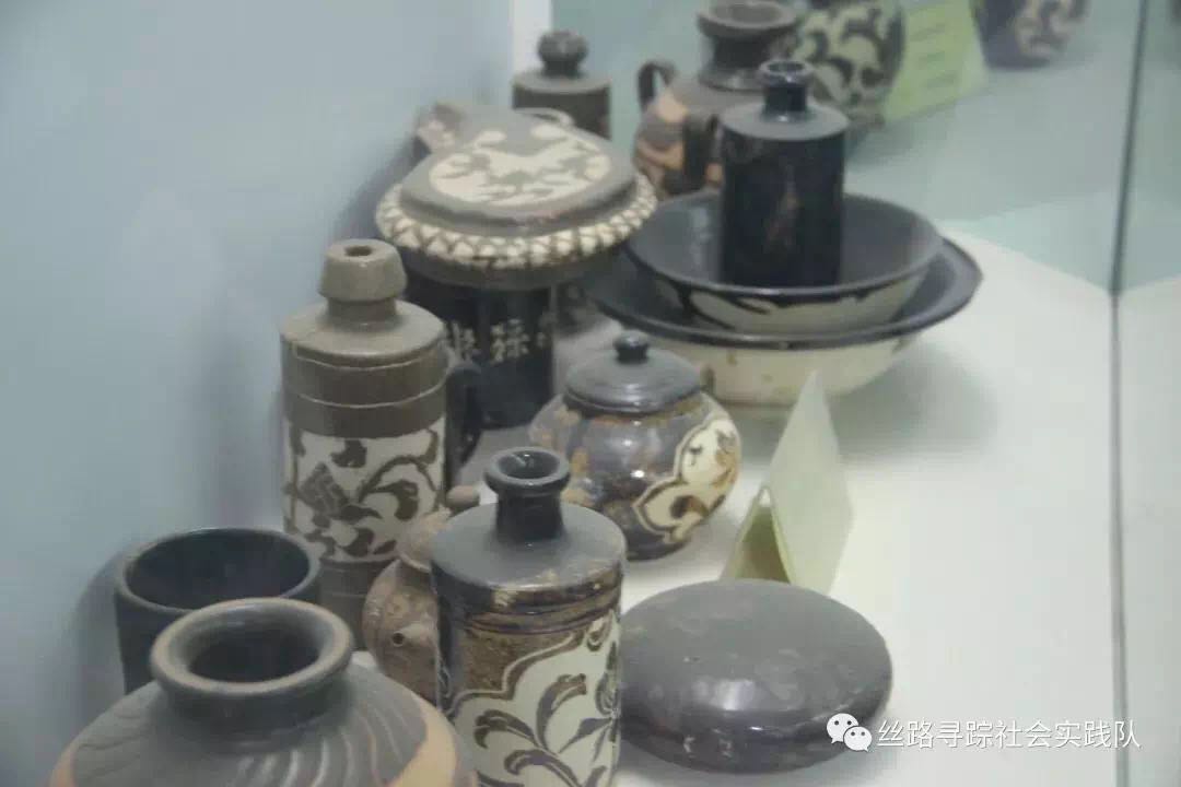 孙老师告诉我们,这家酒厂在临近倒闭之际,及时注入文化创意即用西夏古制陶技术“装扮”,再此光彩照人。为此,我们来到了西夏瓷文化传习所,见到了一些西夏时期的代表瓷器,莹净淡雅的剔花酒瓶,古朴典雅的酿酒翁,串色泽美的执壶…