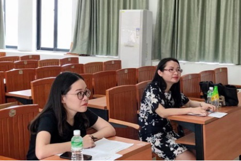 英语专业副主任李贻(左一)和英专教师林茹(右一)在面试