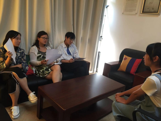 面试过程中,老师们仔细地询问了同学们对专业的选择及对大学生活的规划,细致且全方面考察了同学们的能力问题和生活态度。