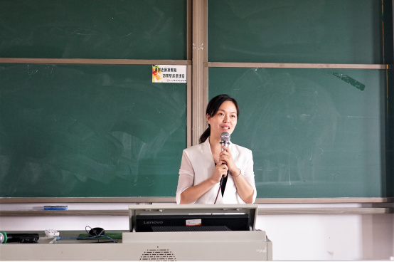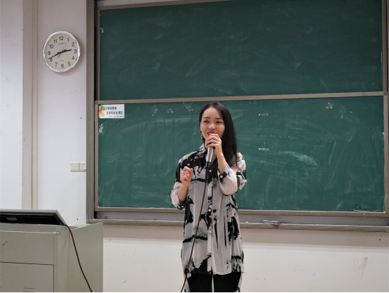 紧接着,经济与贸易学院专业老师冯椿通过介绍自身学习经历强调了外语学习以及精英教育的重要性,她指出,跨专业学习有助于强化自身竞争力同时通过多学科的学习可以复制别人的成功,避免别人的失败。