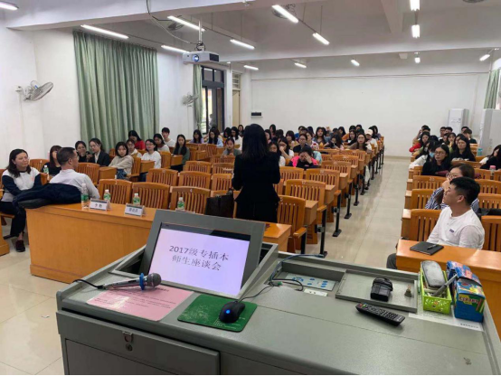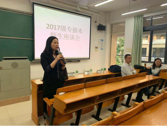 11月27日下午,122cc太阳集成游戏2017级专插本师生座谈会在我校东莞校区定静楼2-C201顺利召开。122cc太阳集成游戏院长廖益清、副院长李向奇、英语专业副主任李贻、教务秘书吴浩州、教师代表周雪清、郑文君、黄珍、宋瑛、辅导员陈兰兰以及17级英语专业专插本的各位同学出席本次会议。