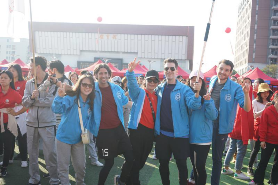 “环校跑”过程中,一道亮丽的风景线来自于我们的外教。在这次奔跑活动中,外教们可谓是充当了十分重要的角色。因我院女老师居多,所以在体力上较别院稍有劣势,但外教们在看到女老师们体力不支后便扛起重任,主动跑到队伍前面举旗呐喊,为她们鼓足了干劲儿,让我们看到外院的团结与力量!