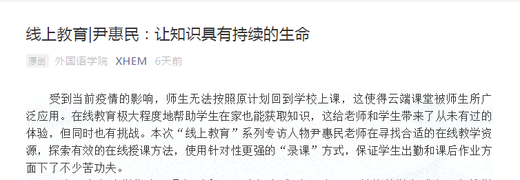 英语专业教师尹惠民于外院微信公众号分享网络教学经验