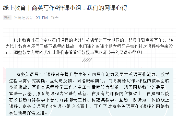 商务英语写作4备课组于外院微信公众号分享网络教学经验