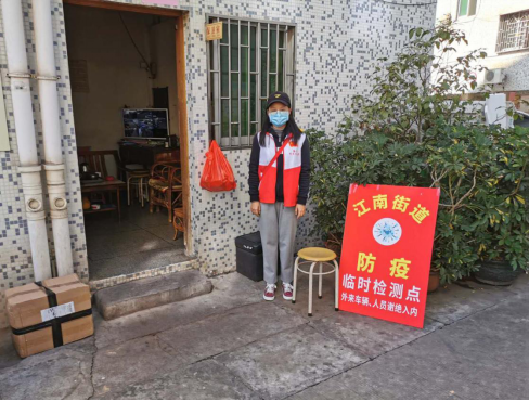 19级商务英语专业E班班长兼团支书、入党积极分子何树文参与防疫工作现场