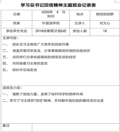 为学习贯彻习近平总书记在回信中的重要精神,我院全体辅导员、院团委、各专业各年级纷纷通过腾讯会议、微信群、QQ群等线上平台开展“学习习近平总书记回信精神”主题云班会,以全面传达习近平总书记对青年的希望与寄语,激励我院学子在新中国筑梦时代挺身而出、担当奉献,彰显新时代中国青年的蓬勃力量。