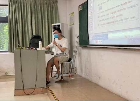 李柯儒老师受伤坚持上课