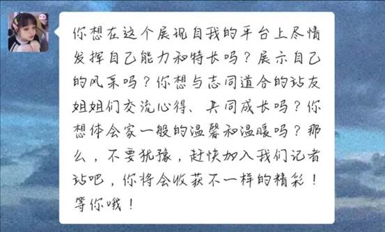 这是个团结友爱的大家庭,期待你们的加入!让外院记者站发光发亮。