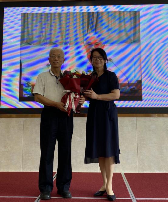 会议伊始,会场大屏幕放映了黄继炎督导在任期间工作瞬间的影片集。接着,院长廖益清上台为黄继炎督导颁发荣退证书,对黄督导的工作成果表示肯定;副院长李向奇和副院长邱易安分别上台为黄继炎督导献上鲜花,感谢黄督导为学院辛勤付出。