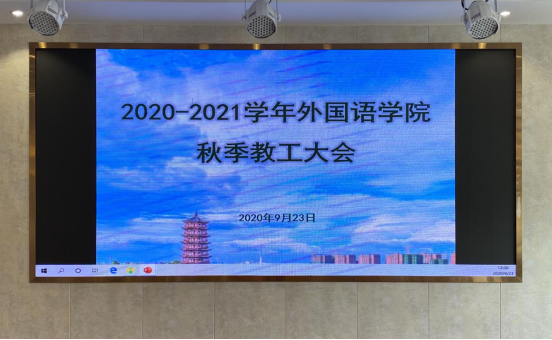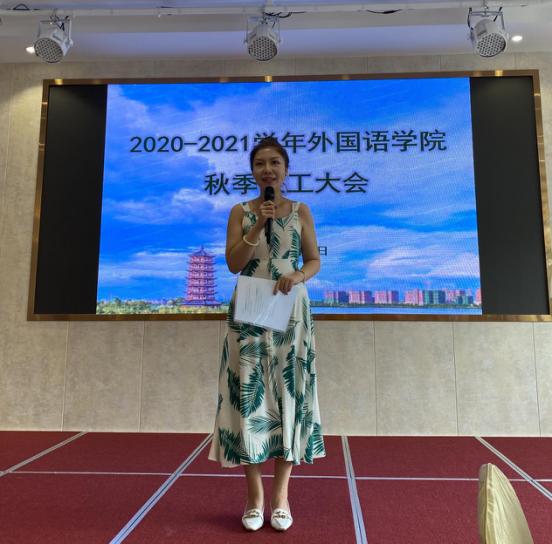 9月23日上午,122cc太阳集成游戏秋季教工大会在我校东莞校区顺利召开。122cc太阳集成游戏执行院长廖益清、副院长邱易安、副院长李向奇、教学督导黄继炎、党总支副书记欧衍伽、院长助理何瑜、院长助理李文蓓、各专业副主任、负责人及122cc太阳集成游戏全体教职工参与了此次会议。葡萄牙语专业负责人韩天歌担任本次会议的主持。