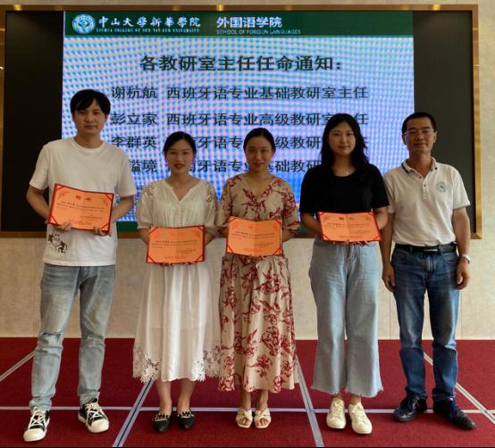 图:副院长李向奇为西班牙语和葡萄牙语专业教研室主任颁发聘书