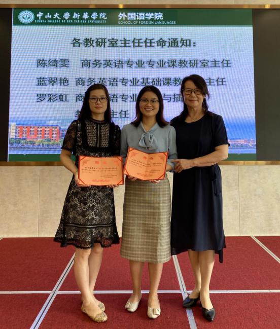 图:副院长邱易安为商务英语专业教研室主任颁发聘书